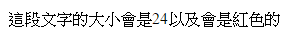 <p style="font-size:24px; color:red;">這段文字的大小會是24以及會是紅色的</p>