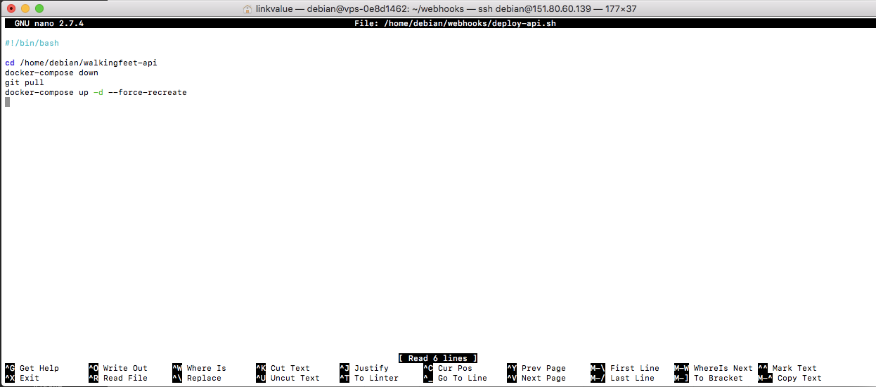 [ { "id": "deploy-api", "execute-command": "/home/debian/webhooks/deploy-api.sh", "command-working-directory": "/home/debian/webhooks",