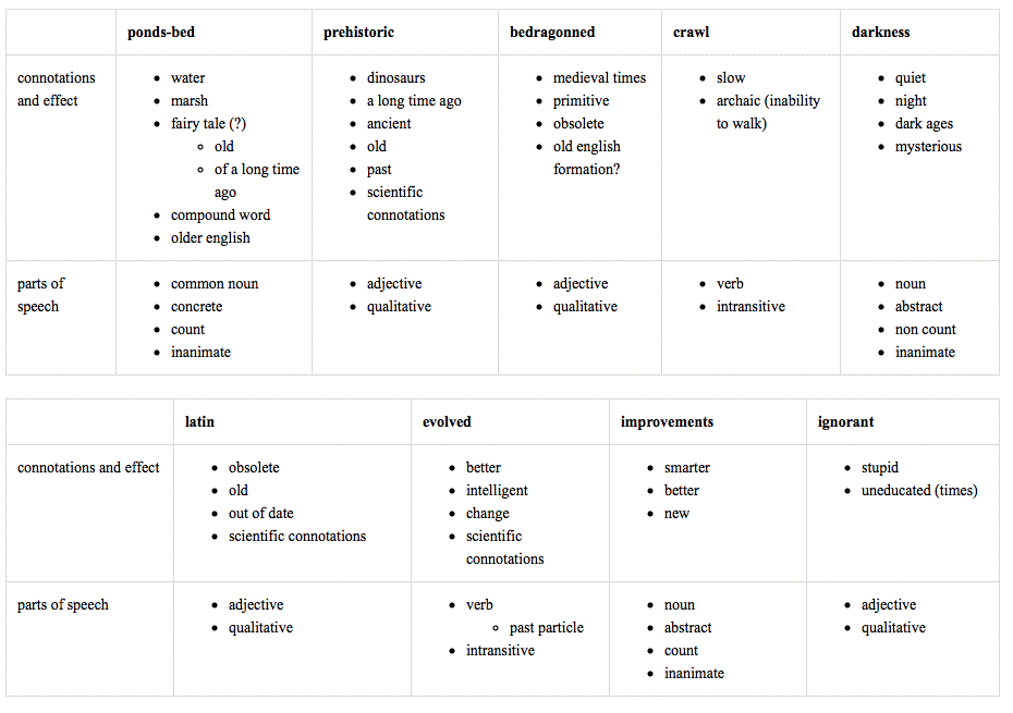 forms of neologism: "river-bed", "bedragonned"