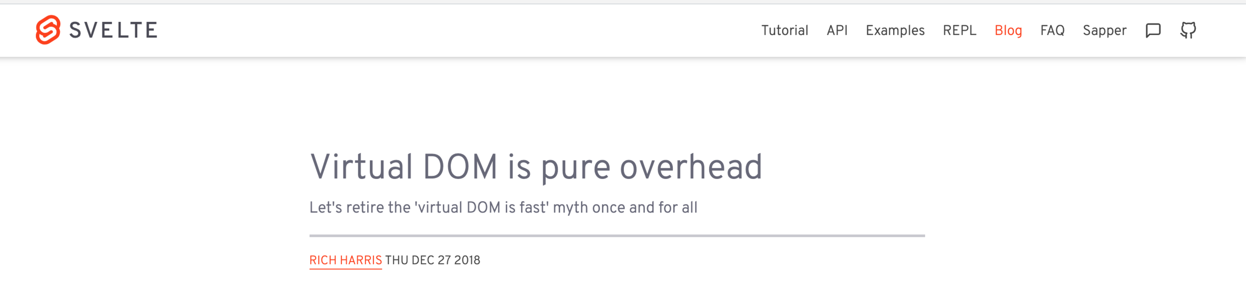 Svelte es un Framework de javascript escrito por Rich Harris, para crear interfaces Web, no maneja virtual DOM y es compilado.