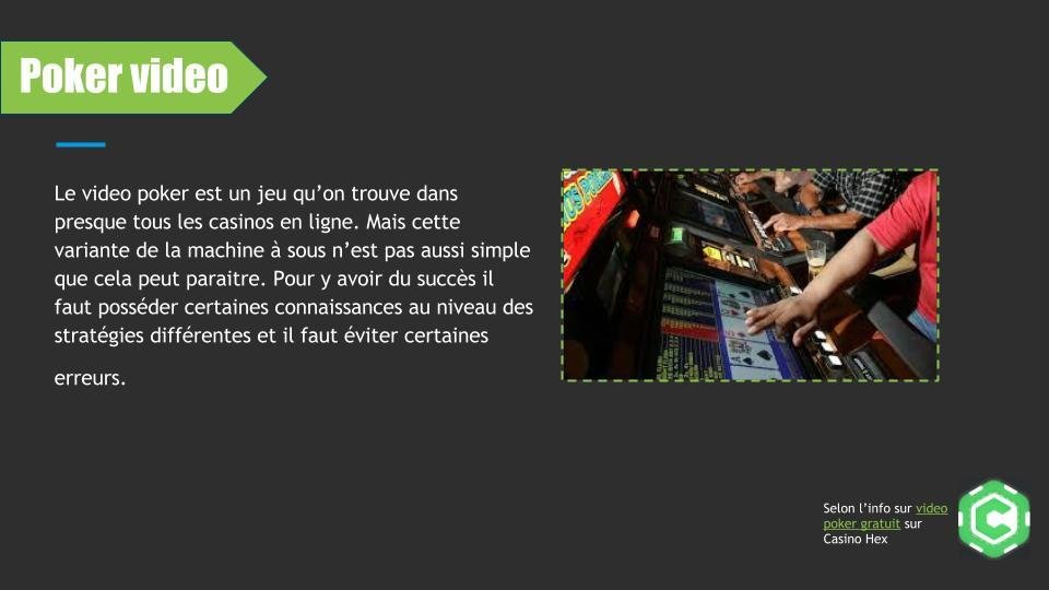 Selon l'info sur video poker gratuit sur Casino Hex