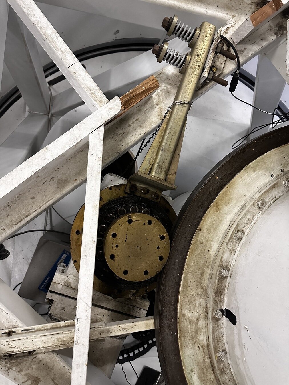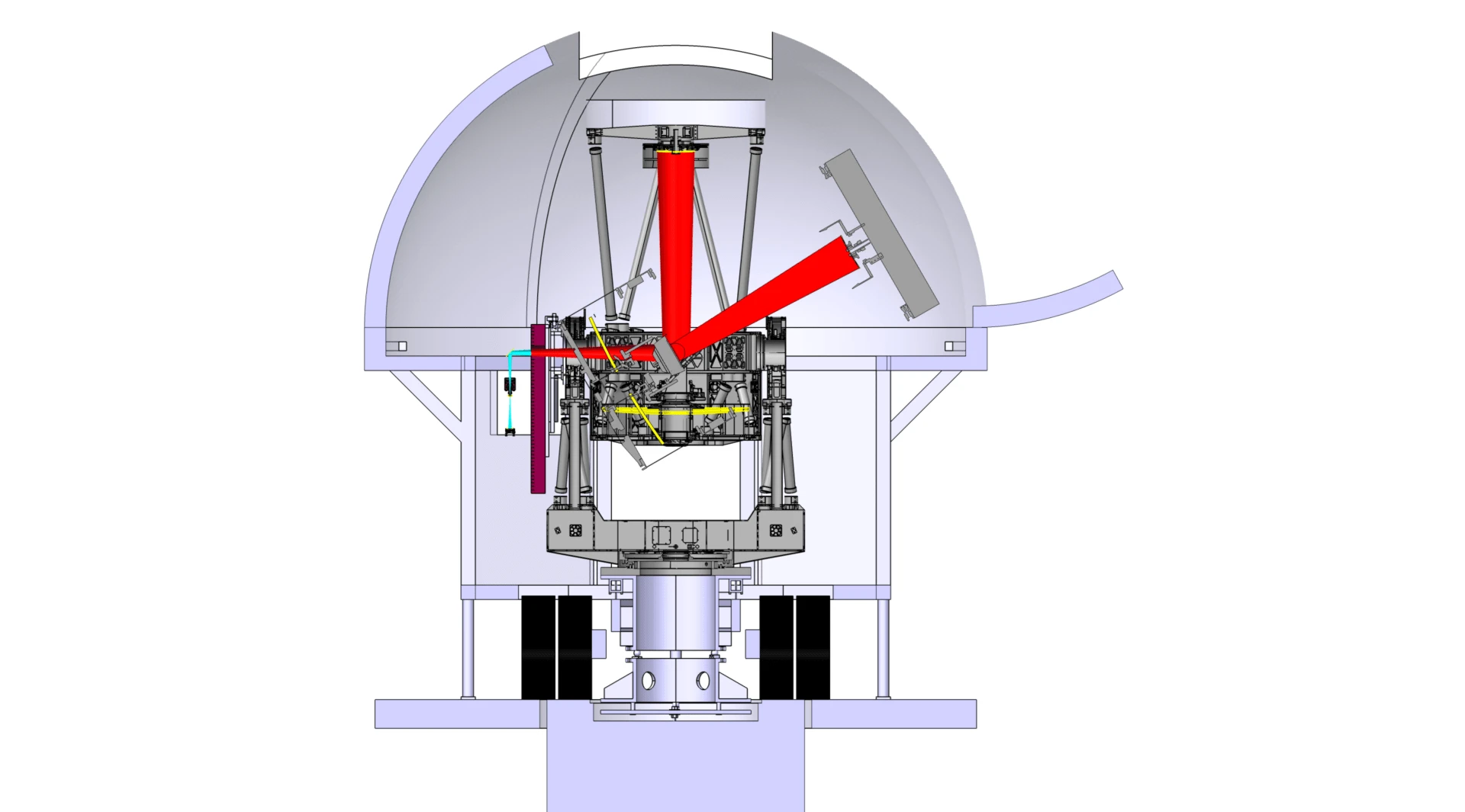 Lifting of the telescope via synchronized linear actuators instead of hoists in order to provide