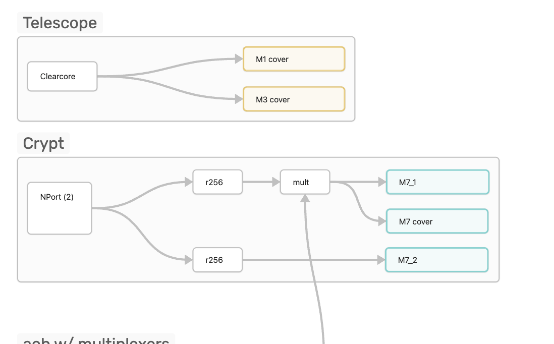 - grouped r256's with 5 multiplexors