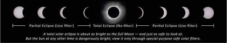 - Outside the path of totality, you must always use a safe solar filter to view the sun directly.