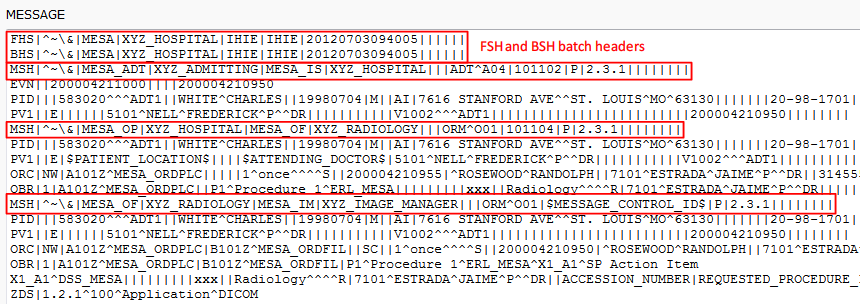 - Gebruikt een berichtgebaseerd formaat met ASCII-tekst. Berichten zijn samengesteld uit segmenten die worden gescheiden door speciale karakters zoals |, ^, en ~.