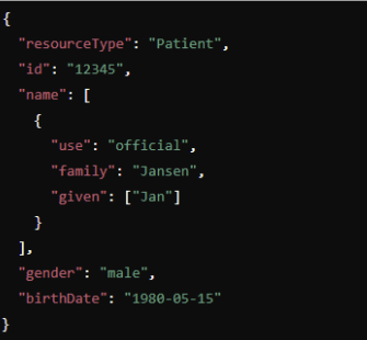 - FHIR ondersteunt meerdere indelingen, waaronder JSON, XML en RDF.