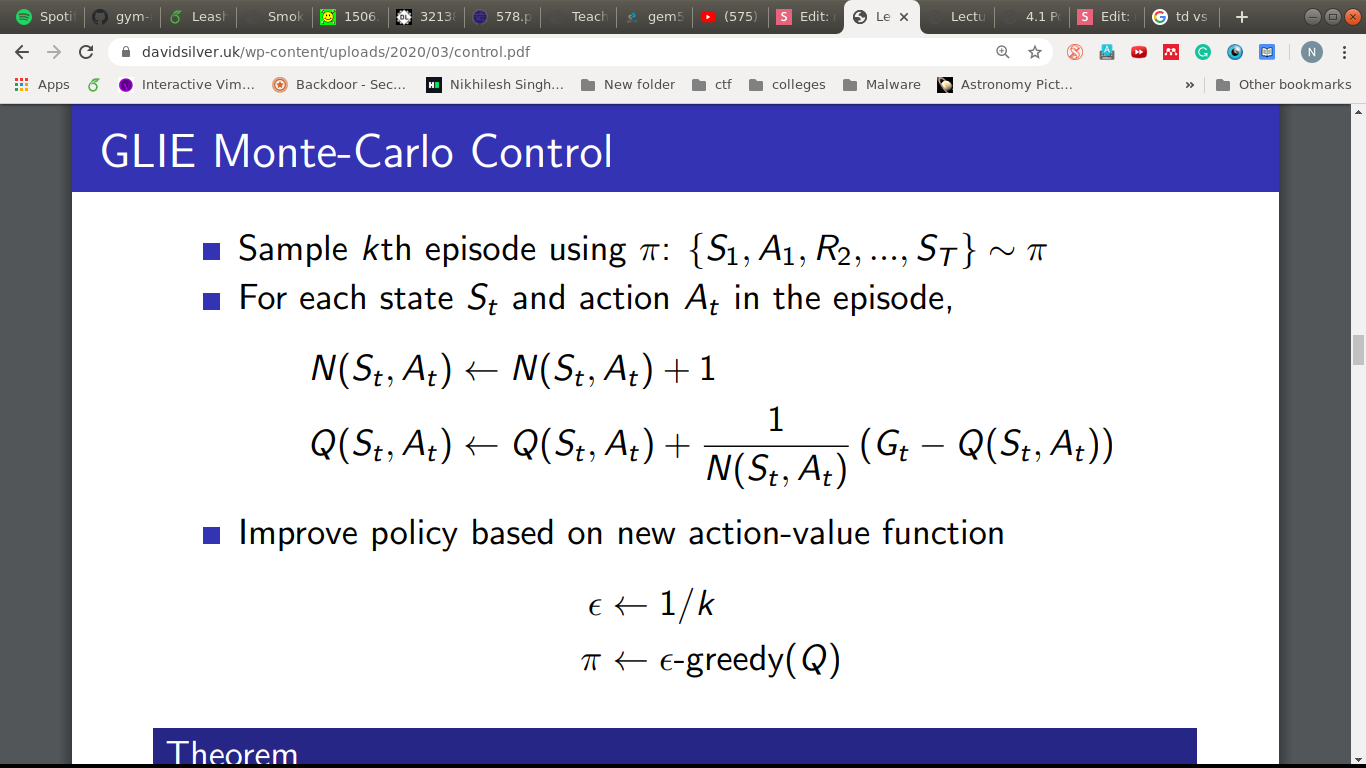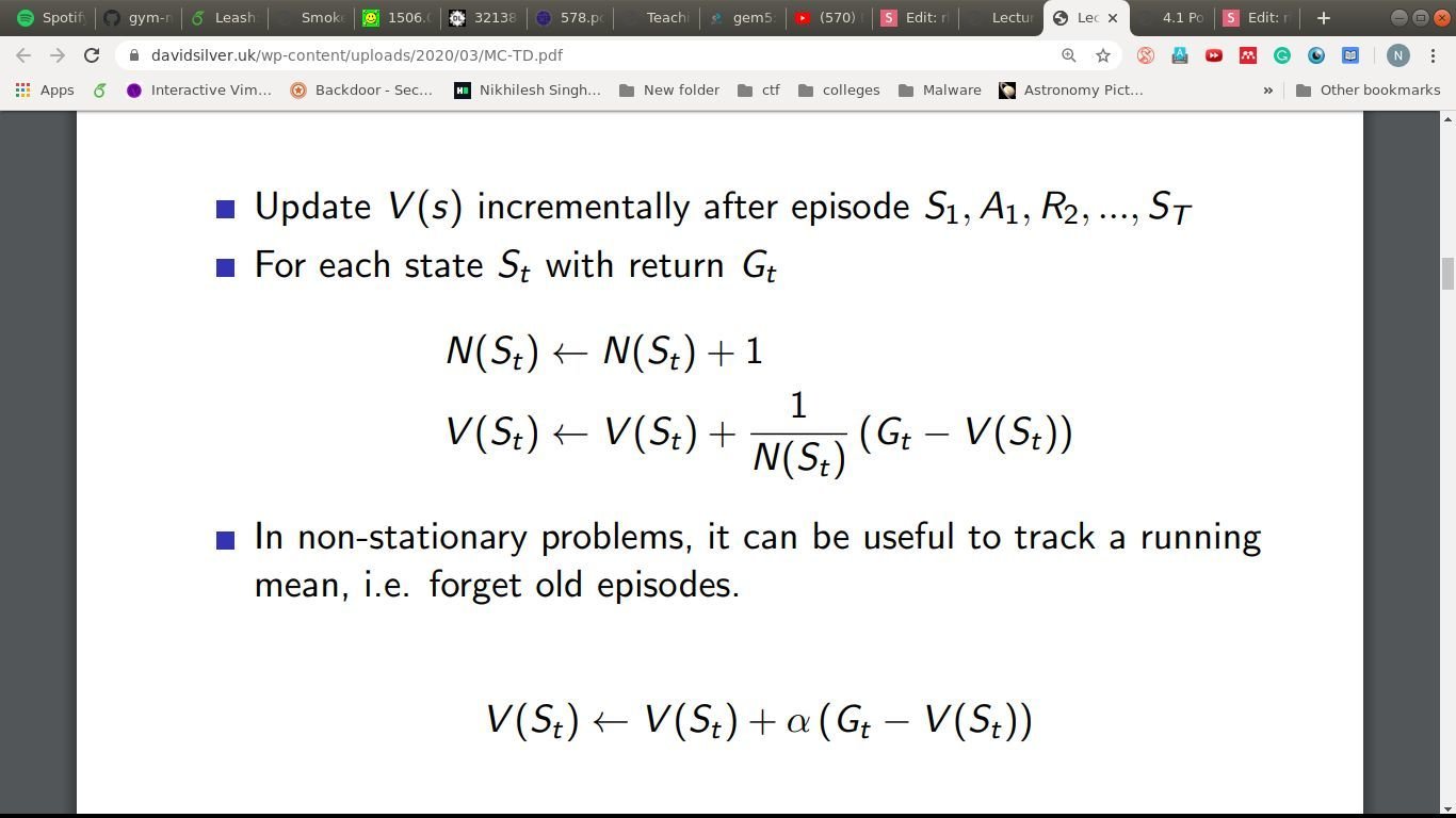 - Updates done at the end of the episode.