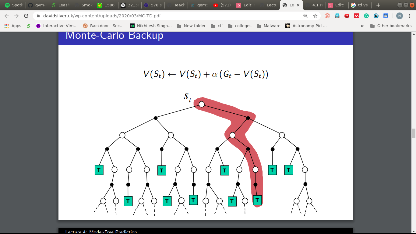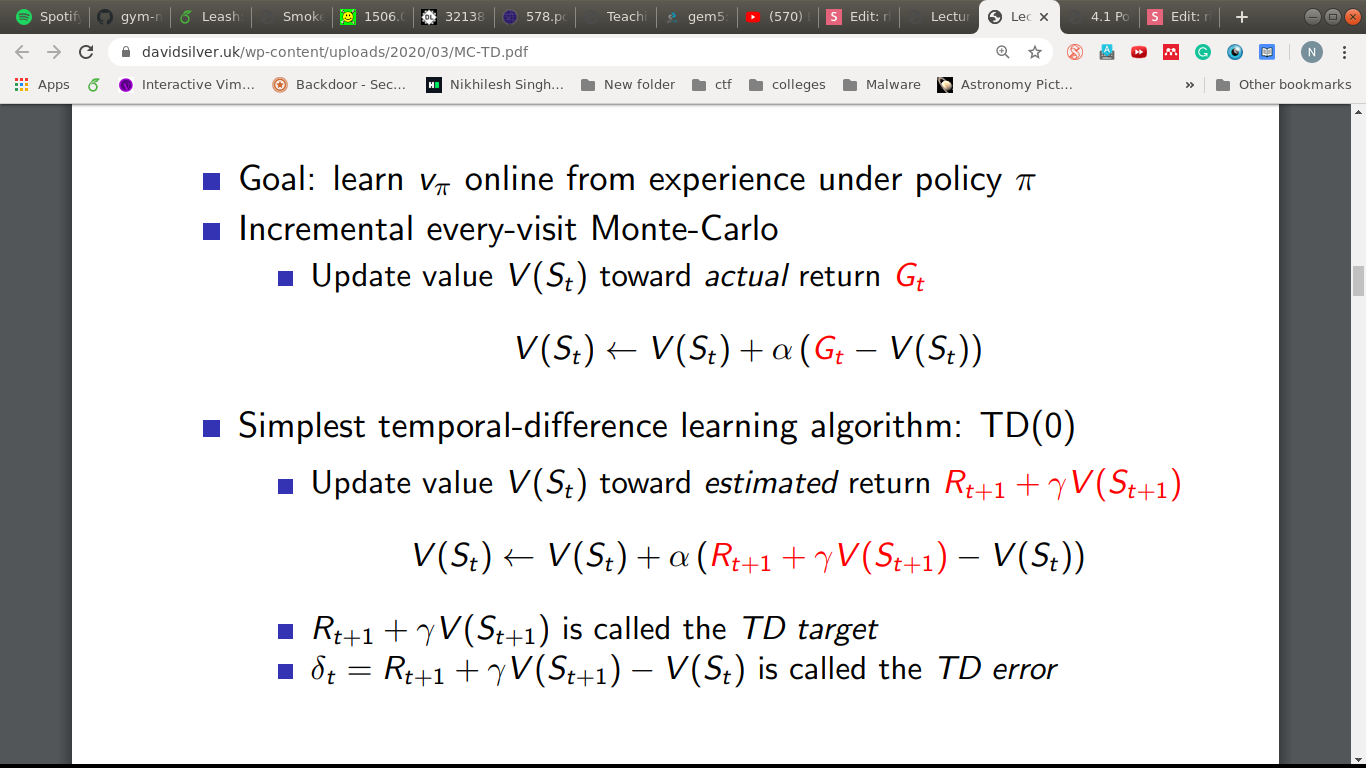 - But we need a target to move towards, G_t in MC.