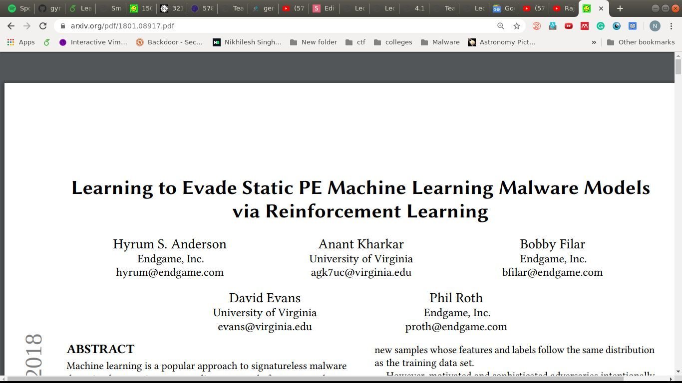- Goal: Break into a malware detection system.