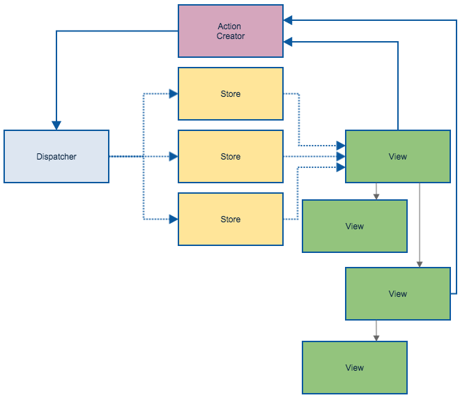 Flux is a pattern for managing data flow in your application. The most important concept is that data flows in one direction.