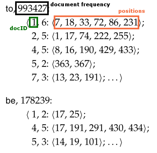 Словопозиции (posting list) - отсортированный список идентификаторов документов, содержащих данный термин