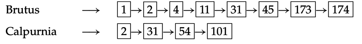 Brutus OR Caesar AND NOT Calpurnia