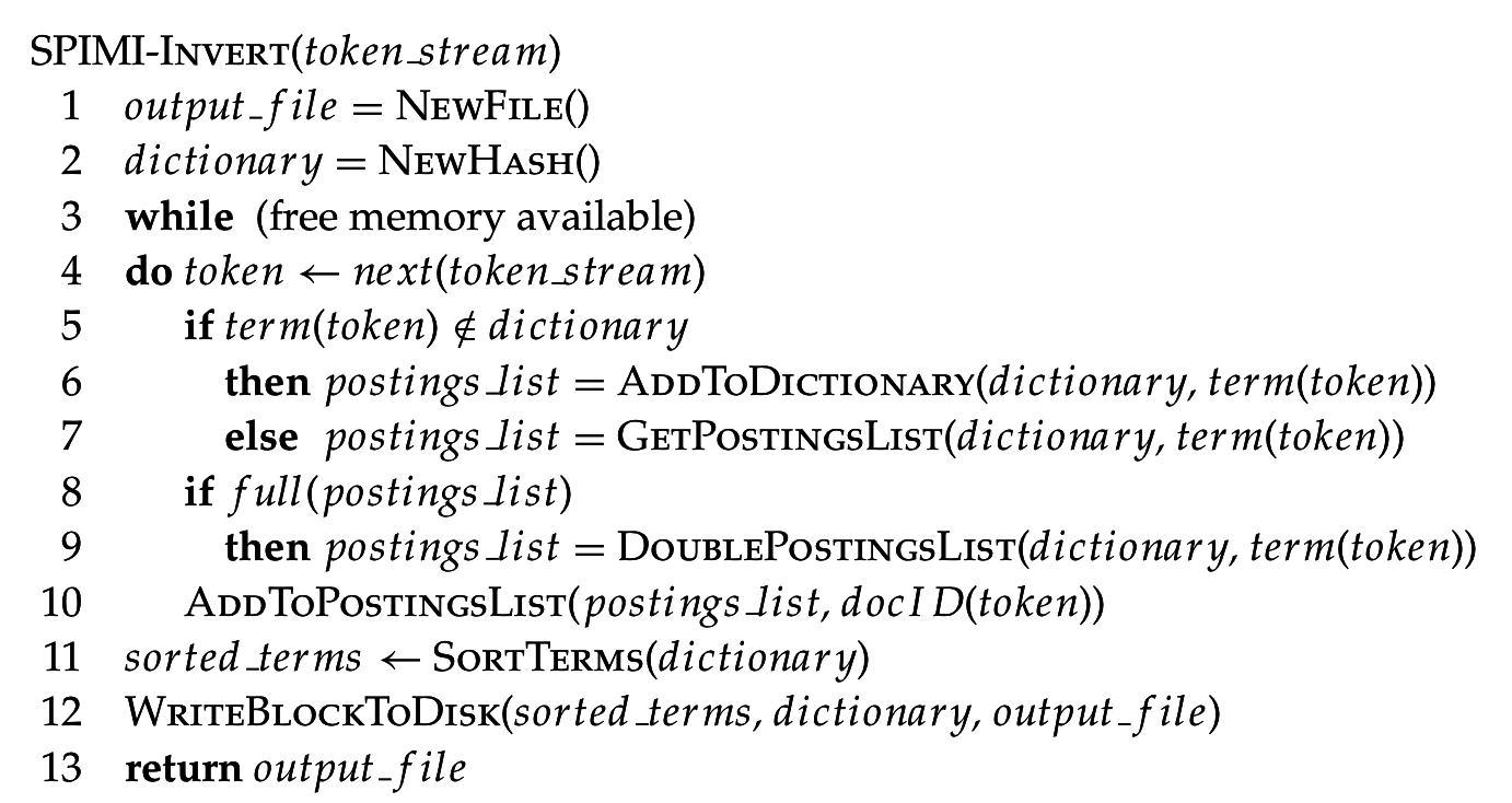 Основная операция - сортировка значений termID-docID.