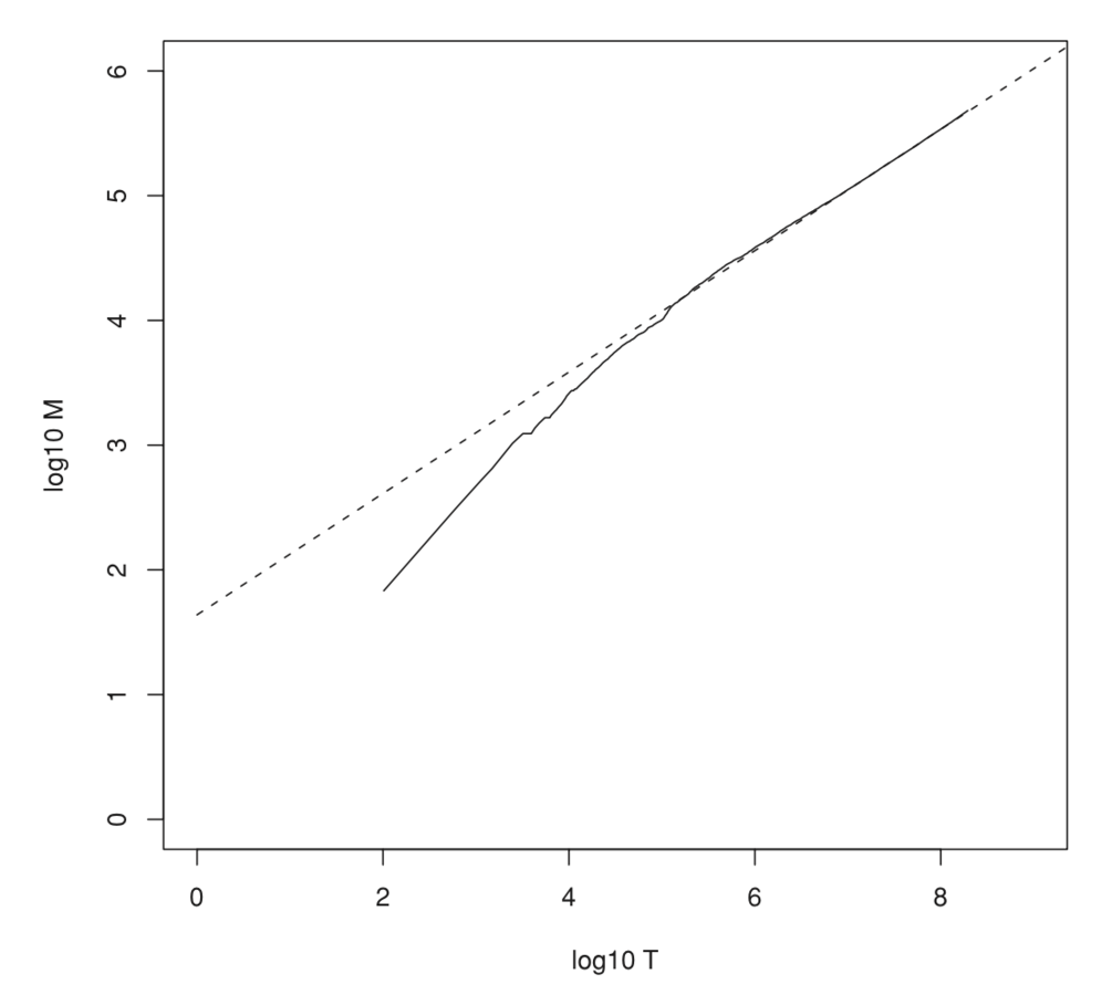 Зависимость линейна по log-log шкале