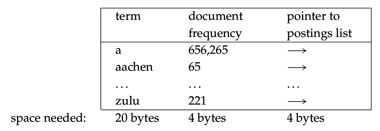 Т.о. с ростом коллекции размера словаря растет, и для больших коллекций он весьма велик => необходимость сжатия словаря