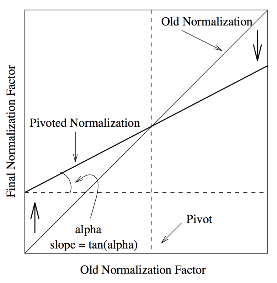 => можно просто зафиксировать pivot как среднее значение (по всей коллекции) при старой нормализации и свести к оптимизации 1 параметра (slope)
