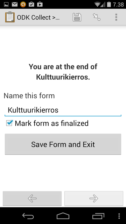 7. tallennetaan ja voidaan täyttää uusi lomake seuraavalla rastilla
