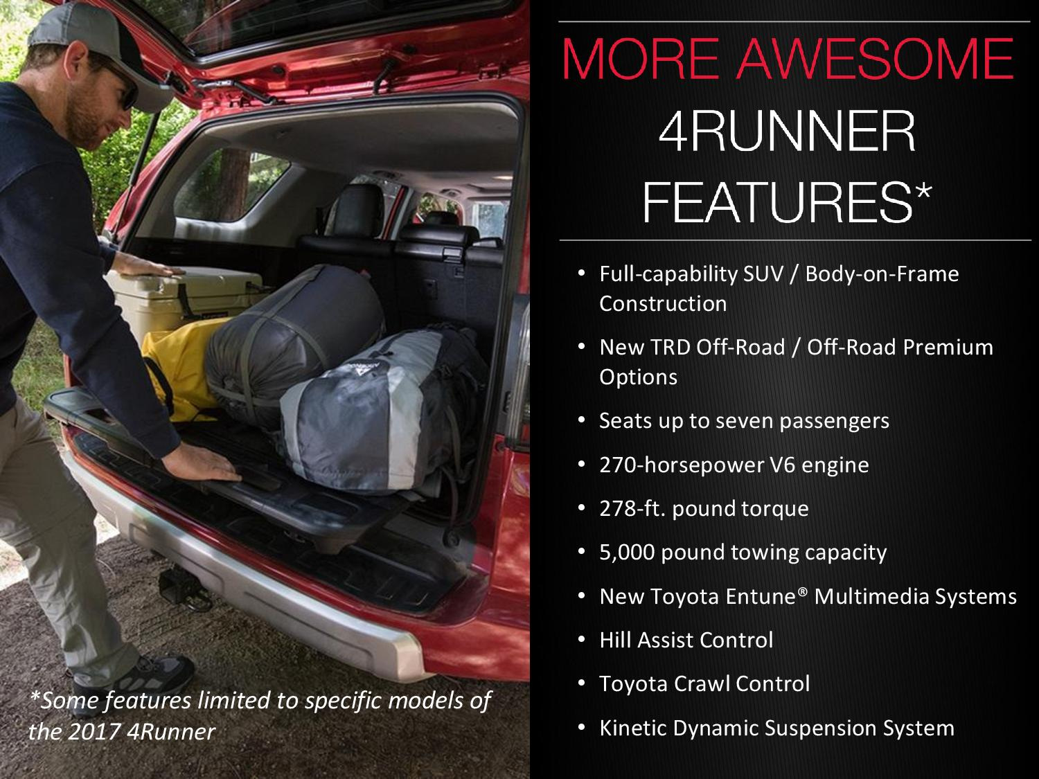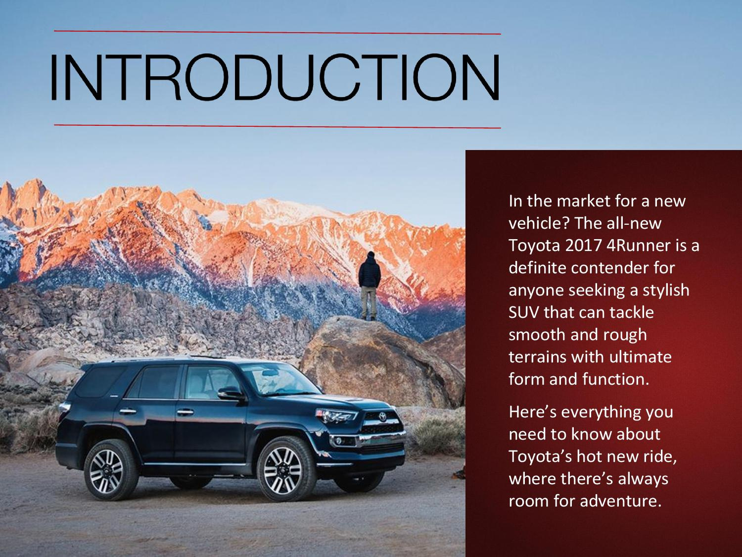 https://www.northhollywoodtoyota.com/inventory/?make=TOYOTA&model=4RUNNER&price_min=&price_max= What’s the latest on Toyota’s hottest selling 4Runner SUV? Discover all the awesome new features included with this one-of-a-kind vehicle and find out which model is right for your driving needs. To schedule your test drive call (800) 800-6730}