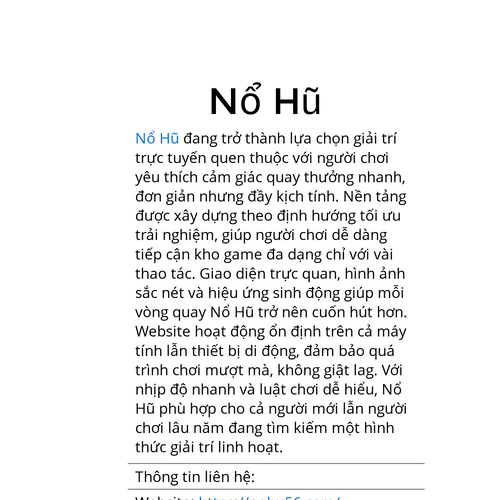 Nổ Hũ đang trở thành lựa chọn giải trí trực tuyến quen thuộc với người chơi yêu thích cảm giác quay thưởng nhanh, đơn giản nhưng đầy kịch tính. Website: https://nohu56.cam/