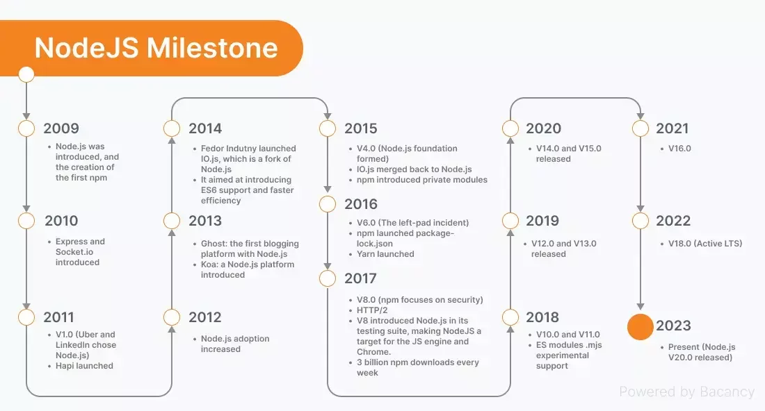NPM (Node Package Manager): Node.js comes with a package manager called npm, which is one of the largest package ecosystems in the world. Developers can easily install and manage third-party libraries and modules using npm, which helps accelerate development.