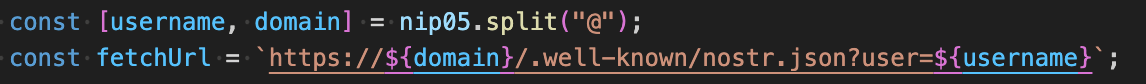 const [name, domain] = lud16.split("@");