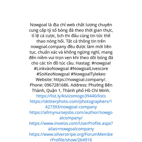 Website: https://nowgoal.company/. Nowgoal là nền tảng trực tuyến đáng tin cậy chuyên cung cấp tỷ số bóng đá theo thời gian thực, tỷ lệ kèo nhà cái, lịch bóng đá cùng những tin tức bóng đá mới nhất. Tất cả thông tin trên website nowgoal.company đều đ