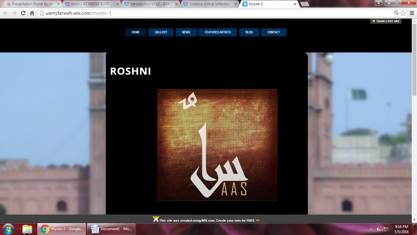 The locations used in Sufi music videos usually are old tombs or historical places. That is not the case in our music video. Our band performance was done on a rooftop. It showed the minimalist look that we aimed for, however, it wasn't historical. The rooftop showed altitude and closeness to God. It was also used because the openness shows the freedom and gives a sense of hope in contrast to the narrative which is sad in the beginning. However, the shoot for our digipak was done in a historical place. We did this in accordance with the conventions of Sufi genre. The location for our narrative was mostly indoor. This denotes that the mother feels captivated because of her emotions and is going through some sort of suffering.