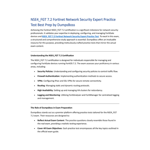 DumpsBoss NSE4_FGT 7.2 Fortinet Network Security Expert Practice Test Prep for Success