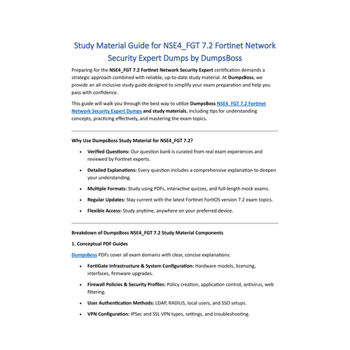 DumpsBoss Expert-Approved NSE4_FGT 7.2 Fortinet Network Security Expert Dumps & Study Material