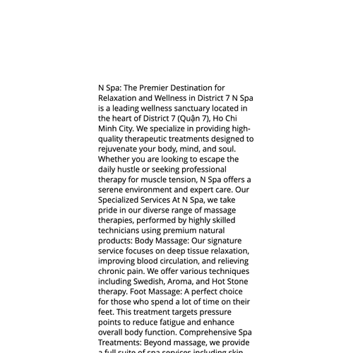Website: https://nspa.com.vn N Spa: The Premier Destination for Relaxation and Wellness in District 7 N Spa is a leading wellness sanctuary located in the heart of District 7 (Quận 7), Ho Chi Minh City. We specialize in providing high-quality therape