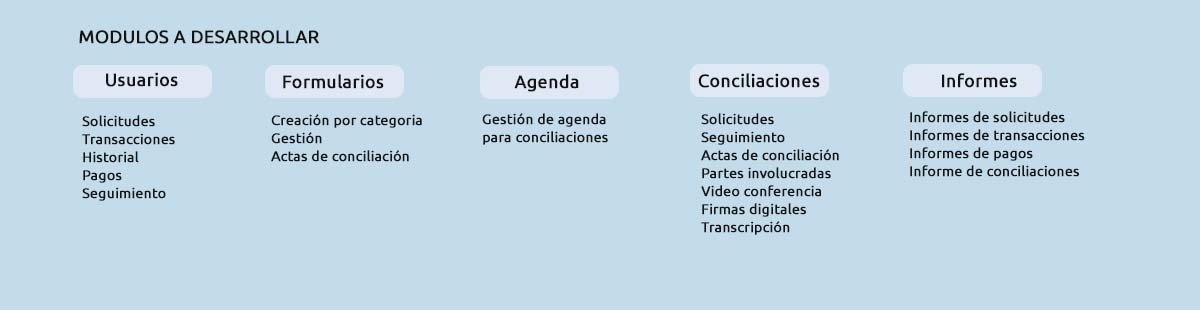 Diseño y desarrollo de una plataforma web para la gestión, administración y generación de conciliaciones virtuales a través de videoconferencia, según los requerimientos solicitados y el diagrama de funcionalidades.