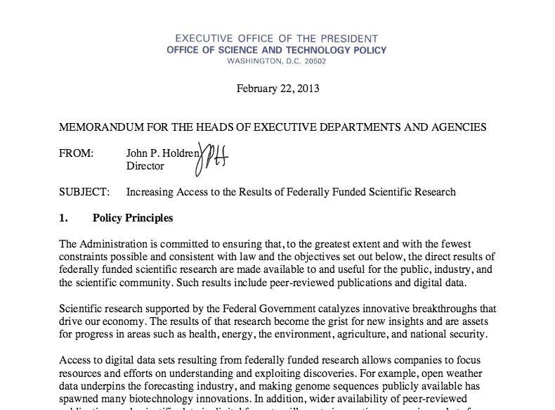 "Increasing Access to the Results of Federally Funded Scientific Research" (2013)