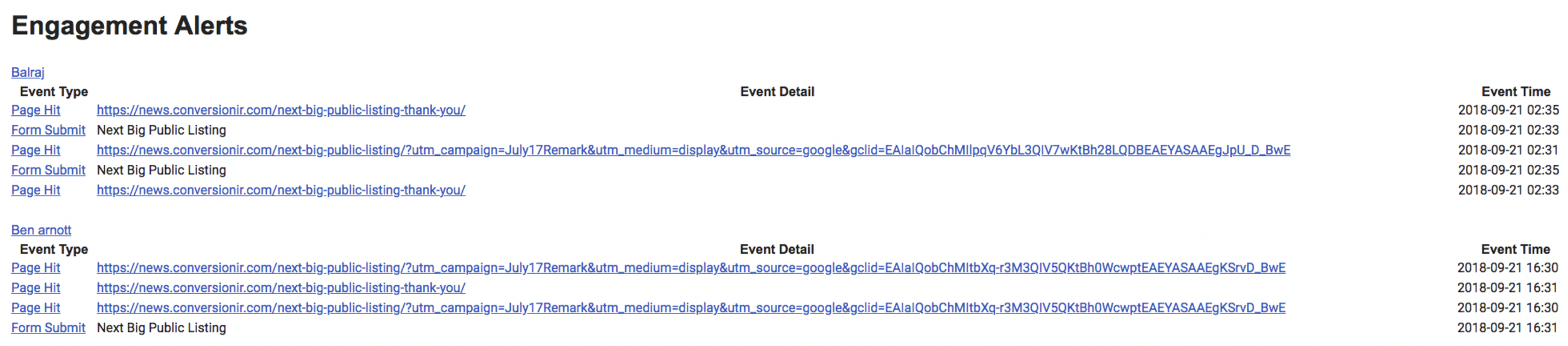 Signup and Engagement Alerts