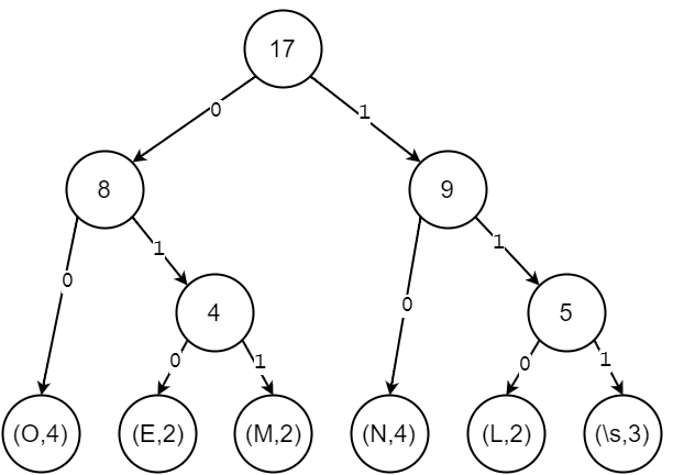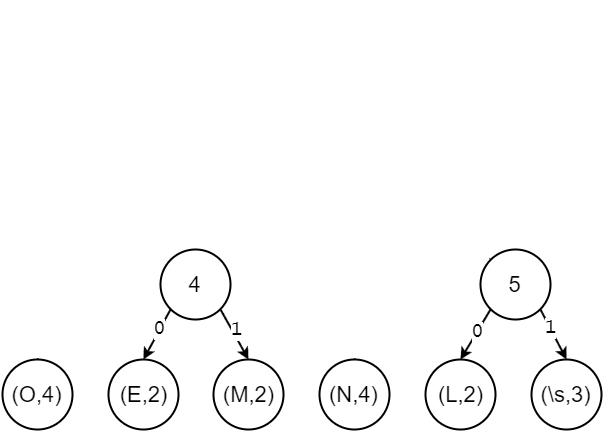 2. Create a new node with these two nodes as children and with frequency equal to thesum of the two nodes' frequency.