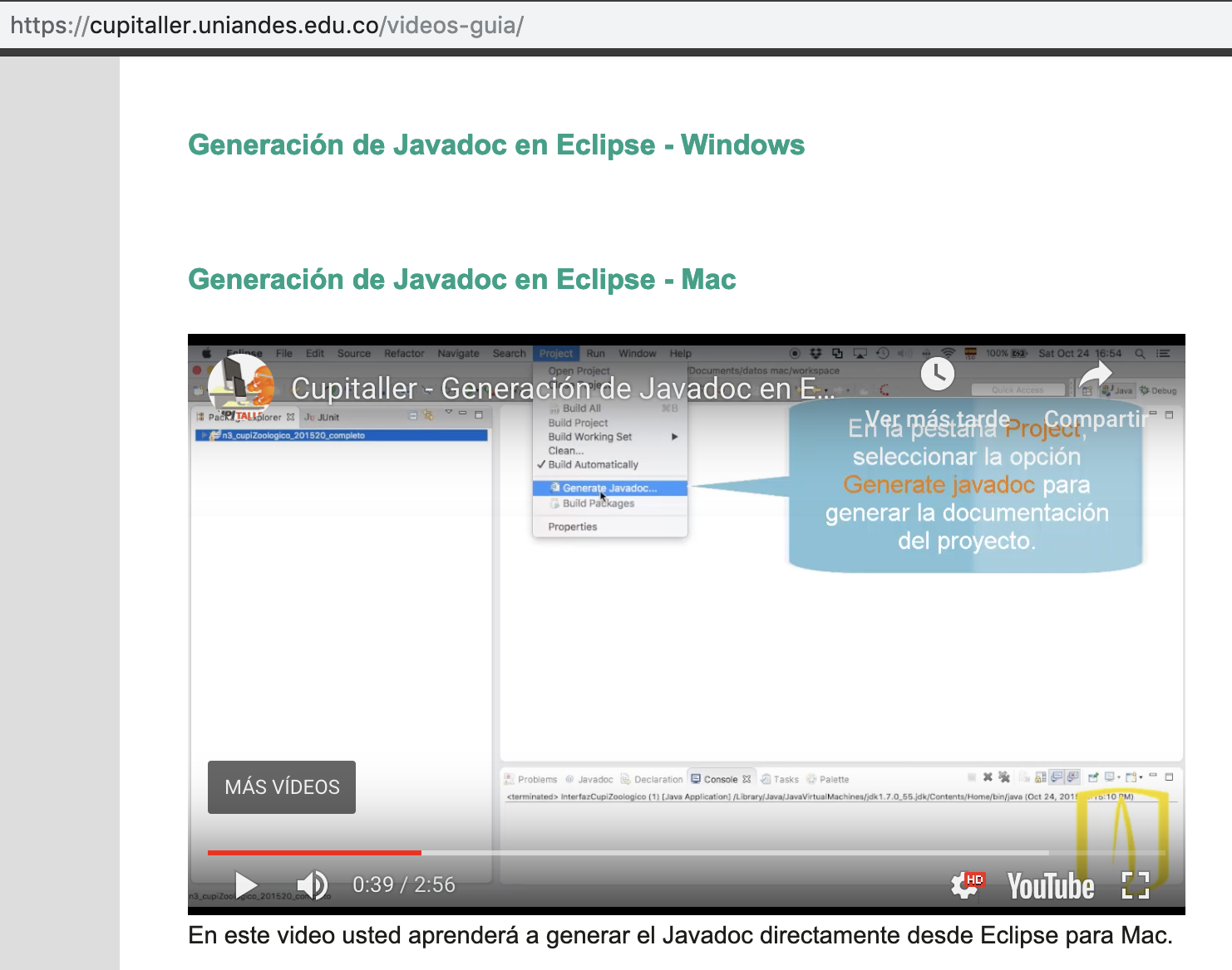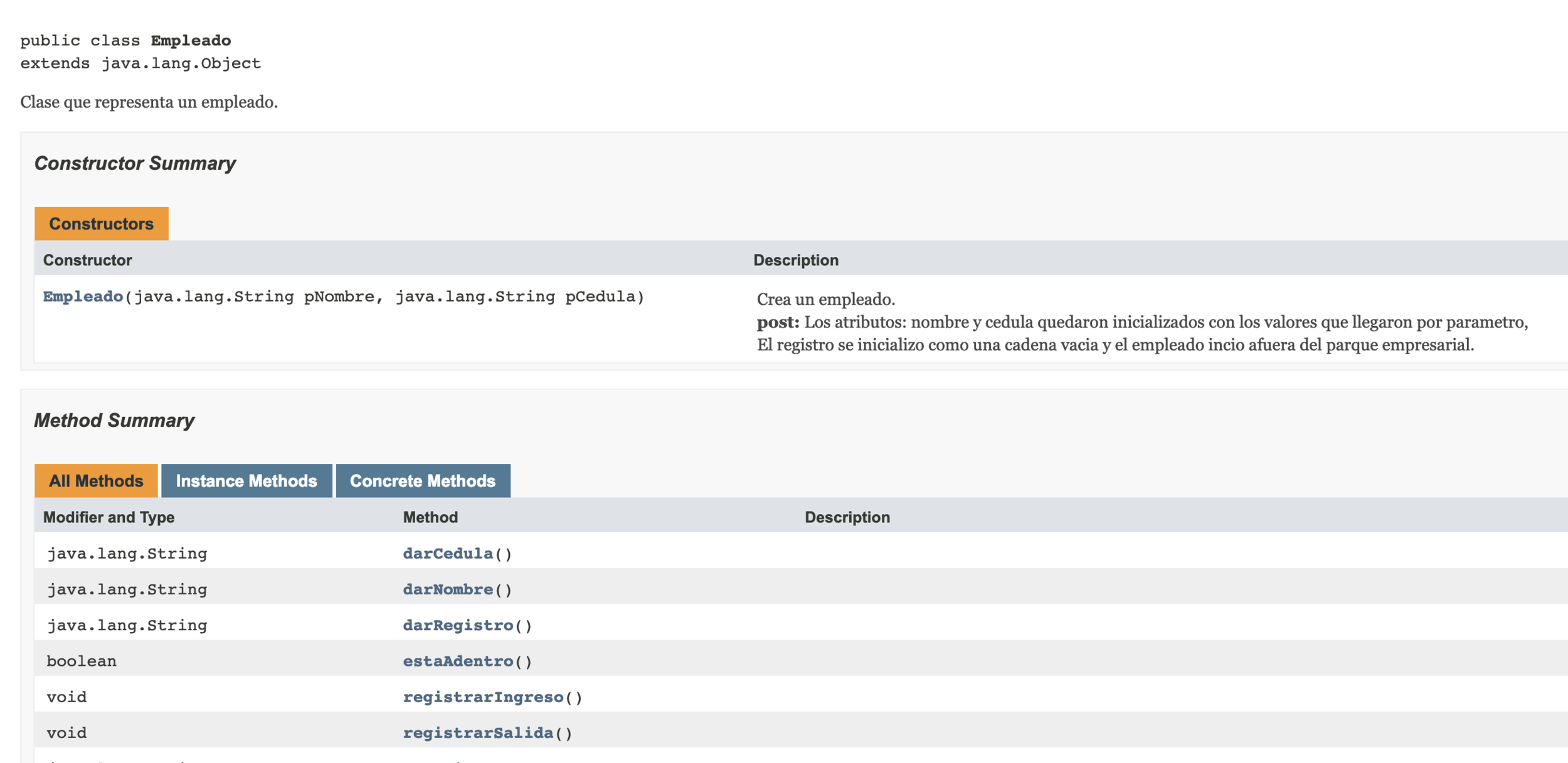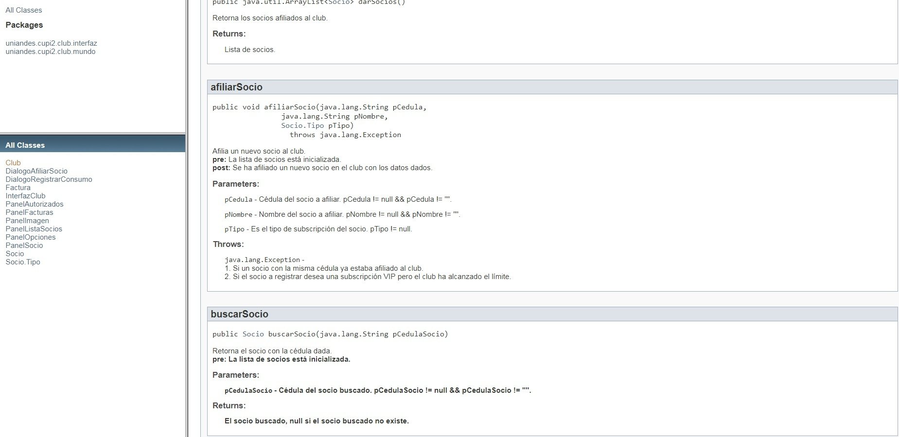 Documentación de los contratos con javadoc