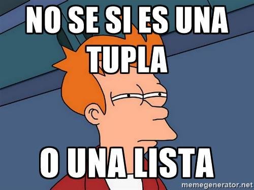 Las tuplas son muy parecidas en su comportamiento a las listas con la excepción de que no pueden ser modificadas.