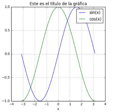 plot(x,y1,label=’sin(x)’) la palabra label define el nombre de esa lína y se verá en la leyenda.