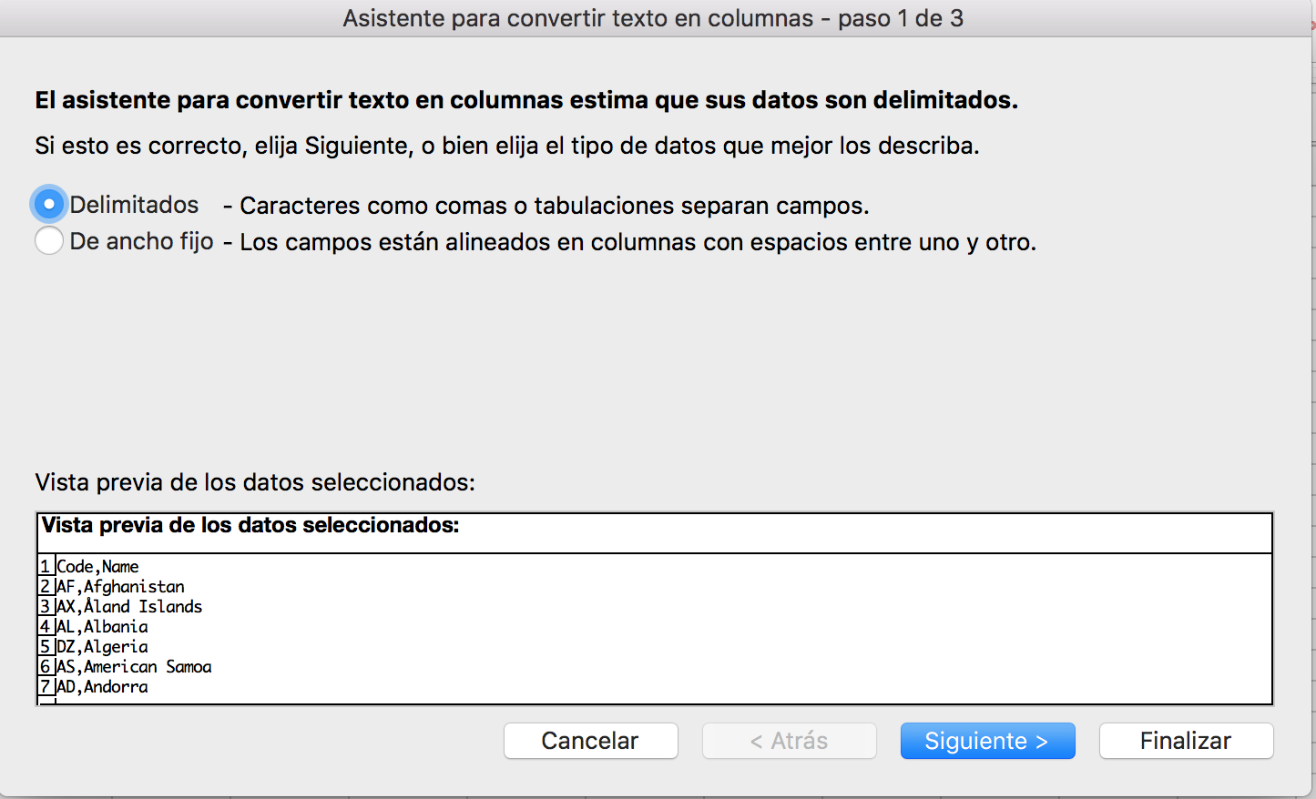 12. En el cuadro de diálogo, seleccionamos "Delimitados"