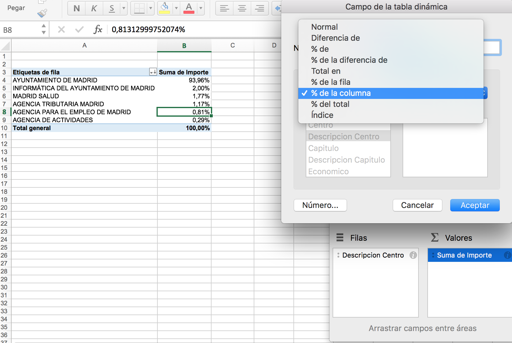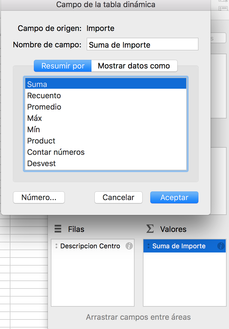 Cuenta: Contabiliza el número de registros de un campo. Es la opción predeterminada si el campo es de tipo texto (en lugar de la Suma), pero también se puede aplicar a un campo numérico