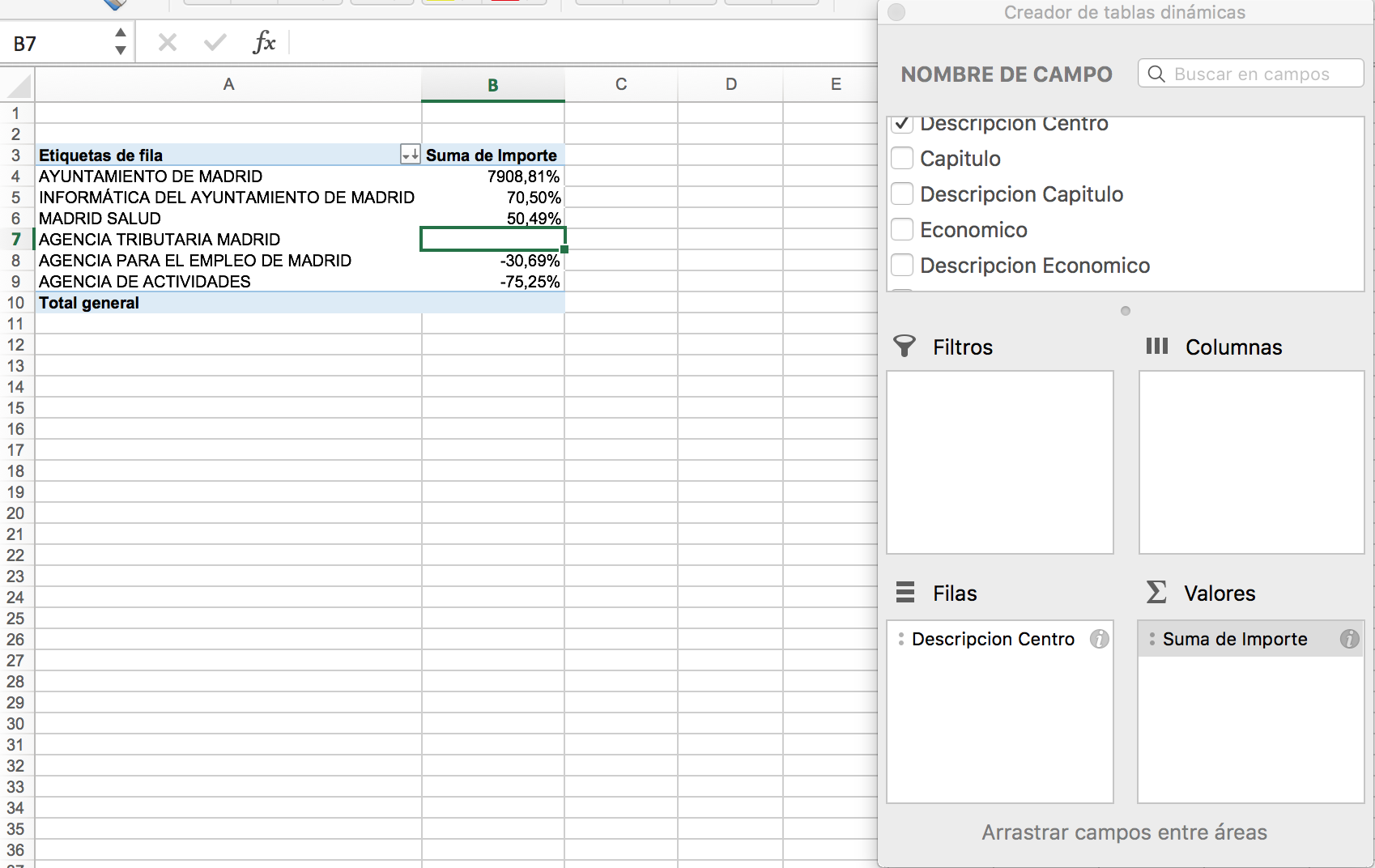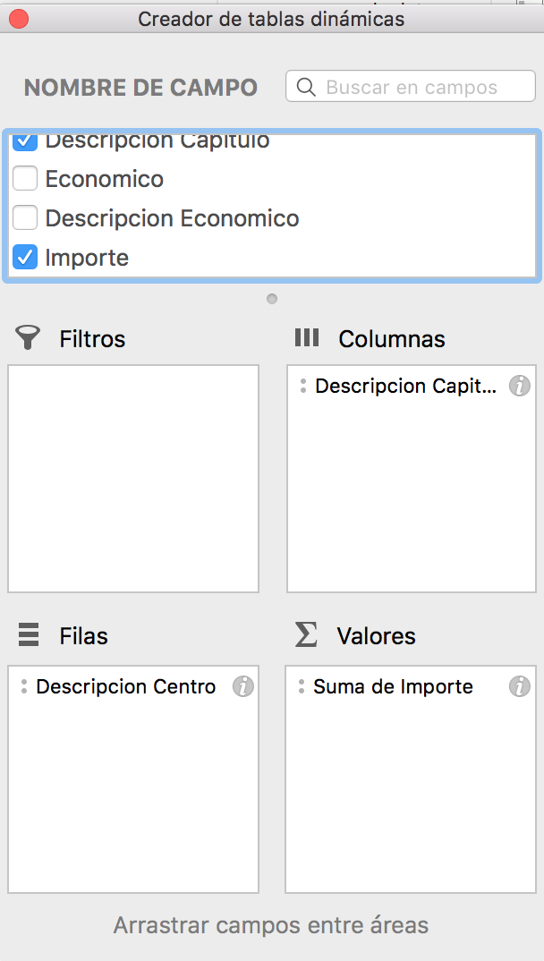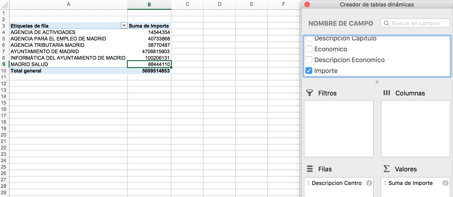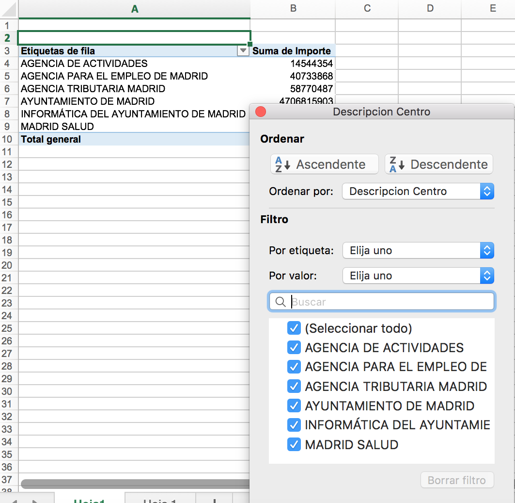 Excel crea una nueva hoja con el desglose del campo que hemos seleccionado