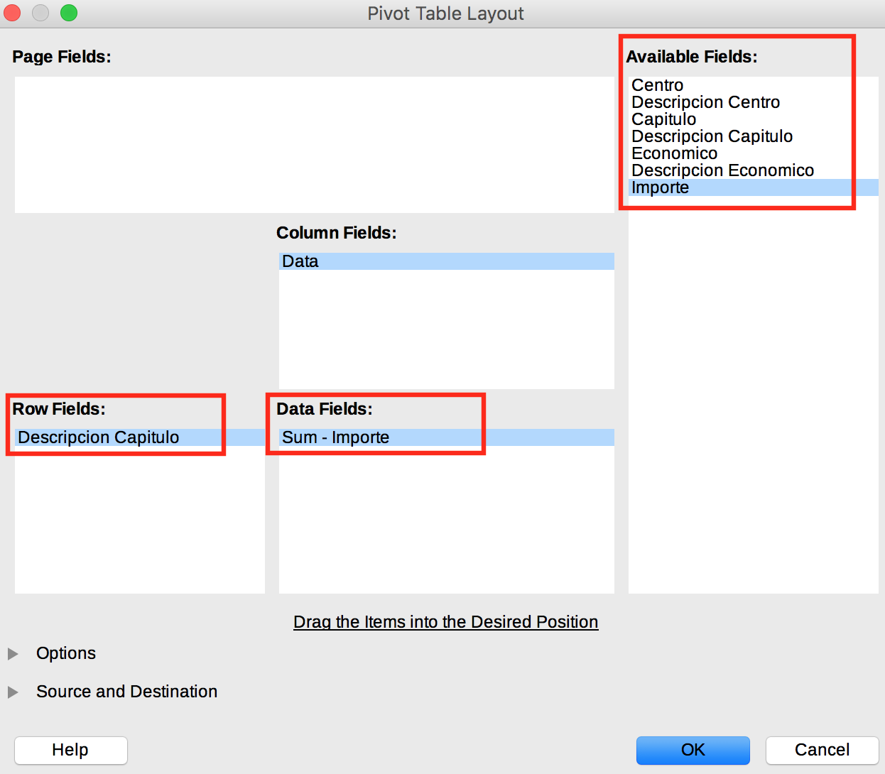 En "Data fields", podemos escoger varias opciones: