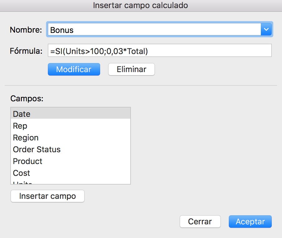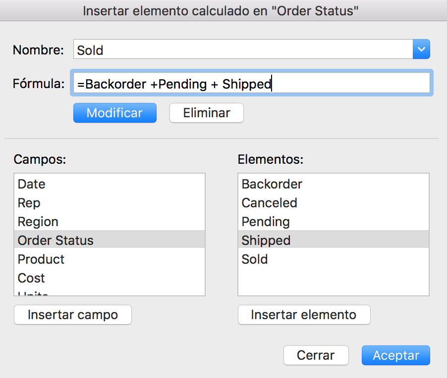 Un elemento calculado se convierte en un elemento más de la tabla dinámica.