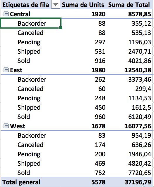 Vamos a crear una nueva categoría dentro de Order Status, que sea la suma de varios elementos dentro de ese campo