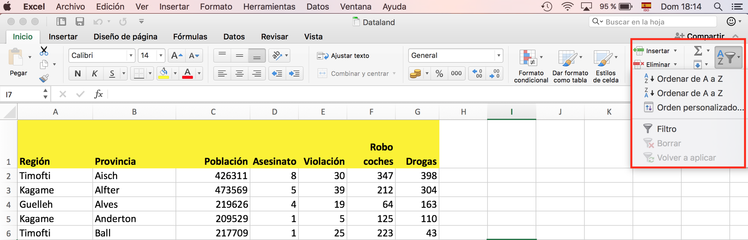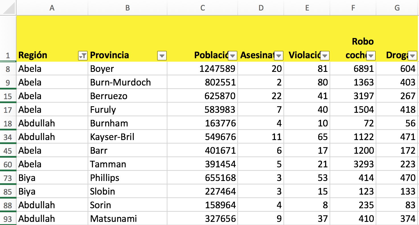 Colocad el cursor sobre cualquier celda de la columna por la que queráis ordenar, ¡pero sin seleccionar la columna!