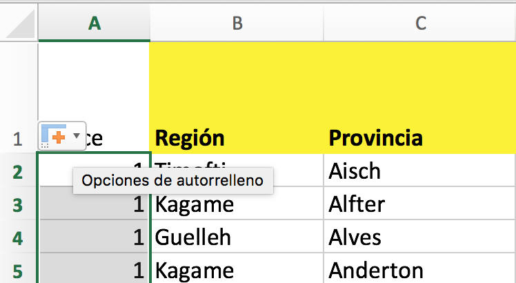 Si no se genera una serie (1,2,3), usad las opciones de autorrelleno