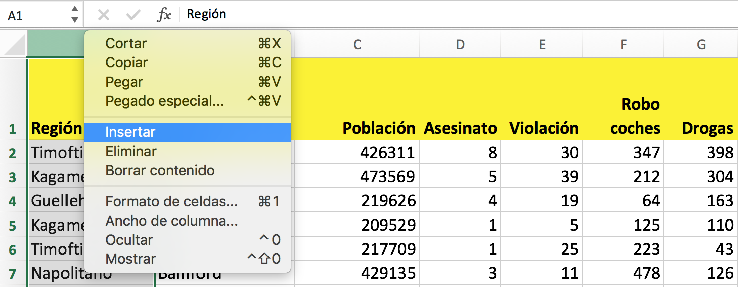 2. Desde una celda > botón derecho del ratón