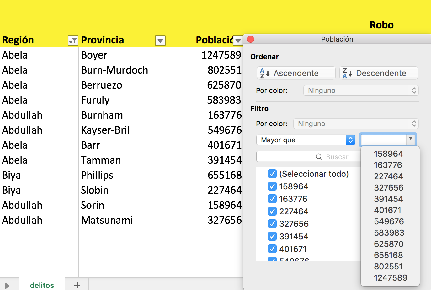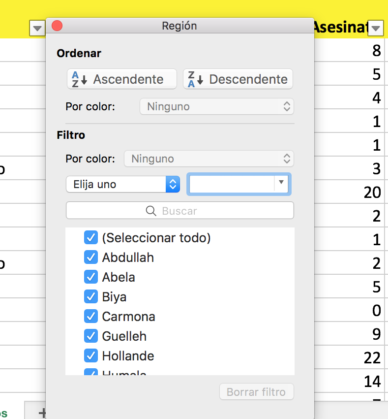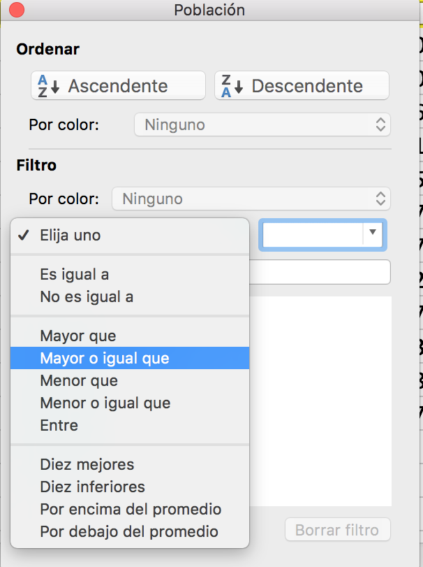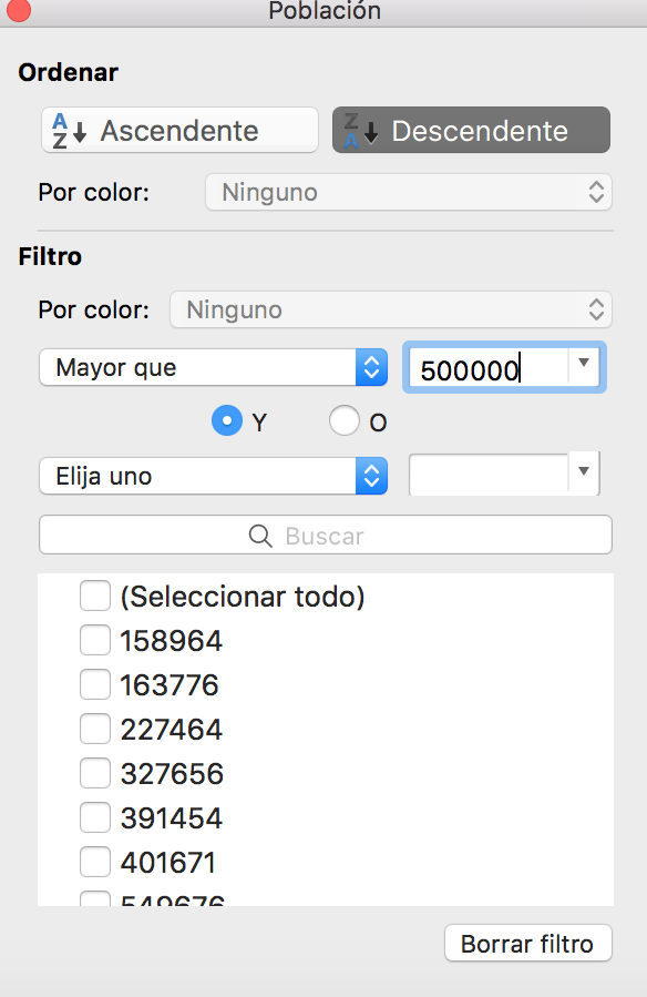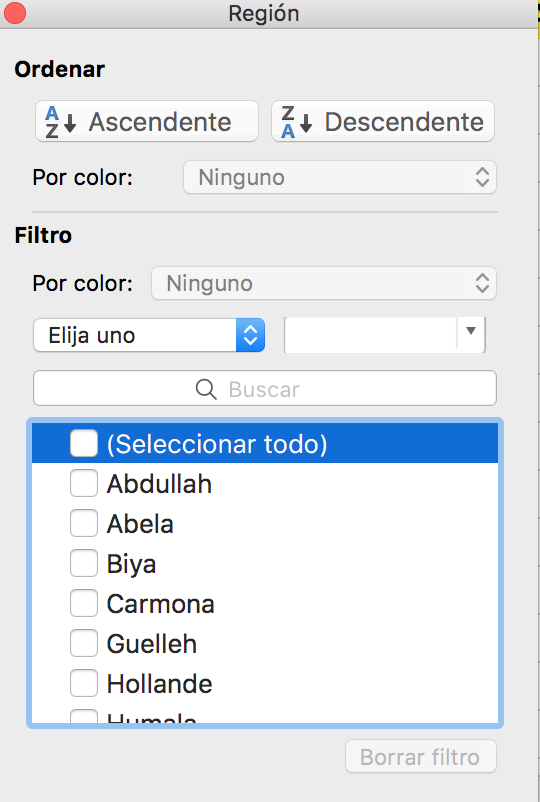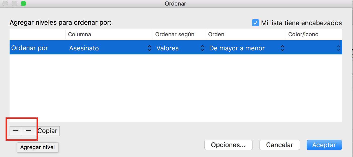 Si seleccionáis la columna en lugar de solo una celda de la columna que os interesa ordenar, veréis este mensaje:
