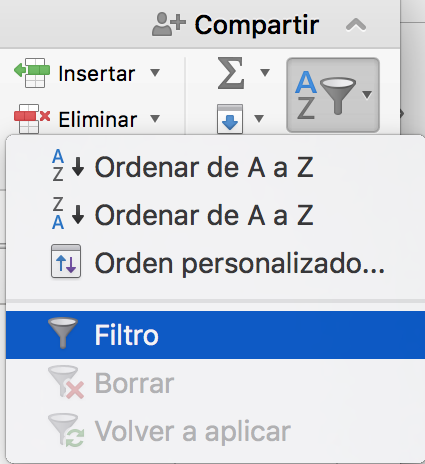 Seleccionad la opción "Ordenar y filtrar" de la barra de herramientas. En el menú desplegable, elegid "ordenar de mayor a menor"/"ordenar de Z a A"