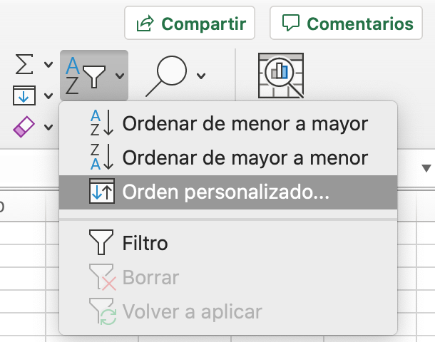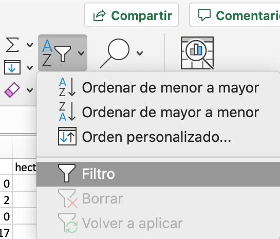 2. Clicad en el botón AZ / Ordenar y filtrar
