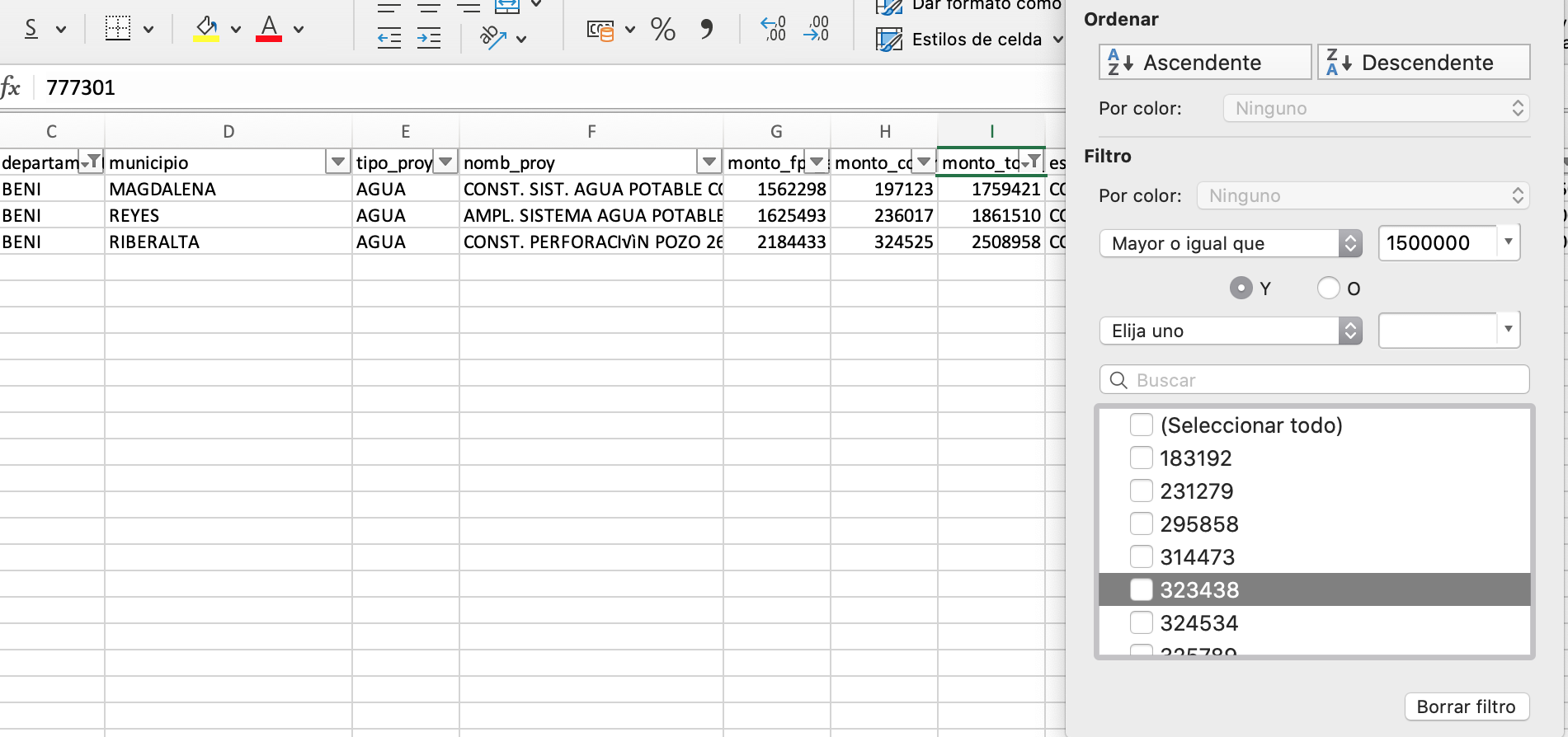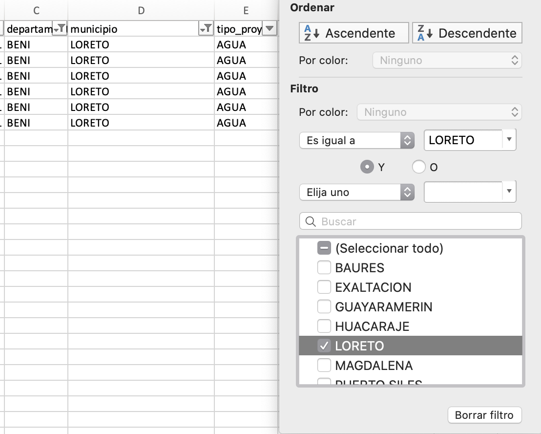 Combinar filtros de texto y número